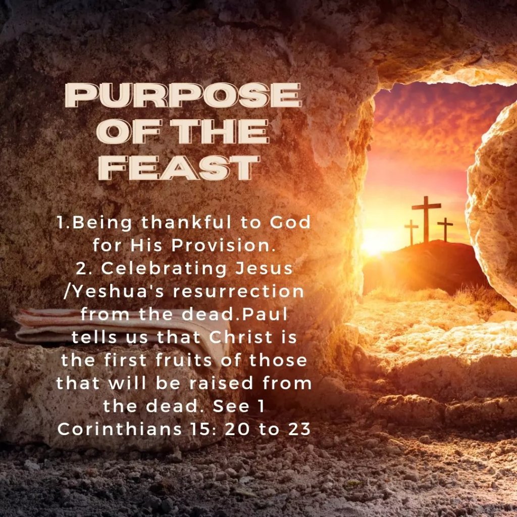 The purpose of this feast is to celebrate the resurrection as well as to give thanks for the Lord providing for us and our families. Please see slides below on more of how to observe this feast as a Christian.