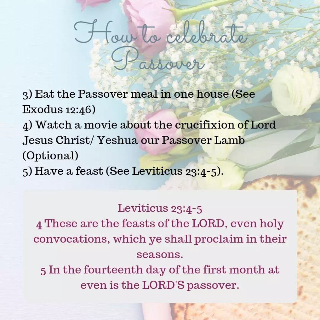 For more ways on keeping the Passover , I recommend you watch these videos on YT: